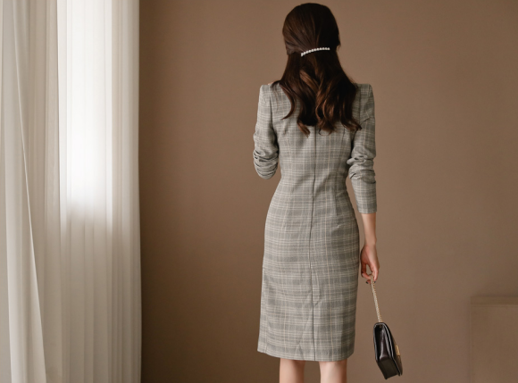 粉色格子裙怎么搭配好看 V领设计露出迷人锁骨 满满的恋爱感