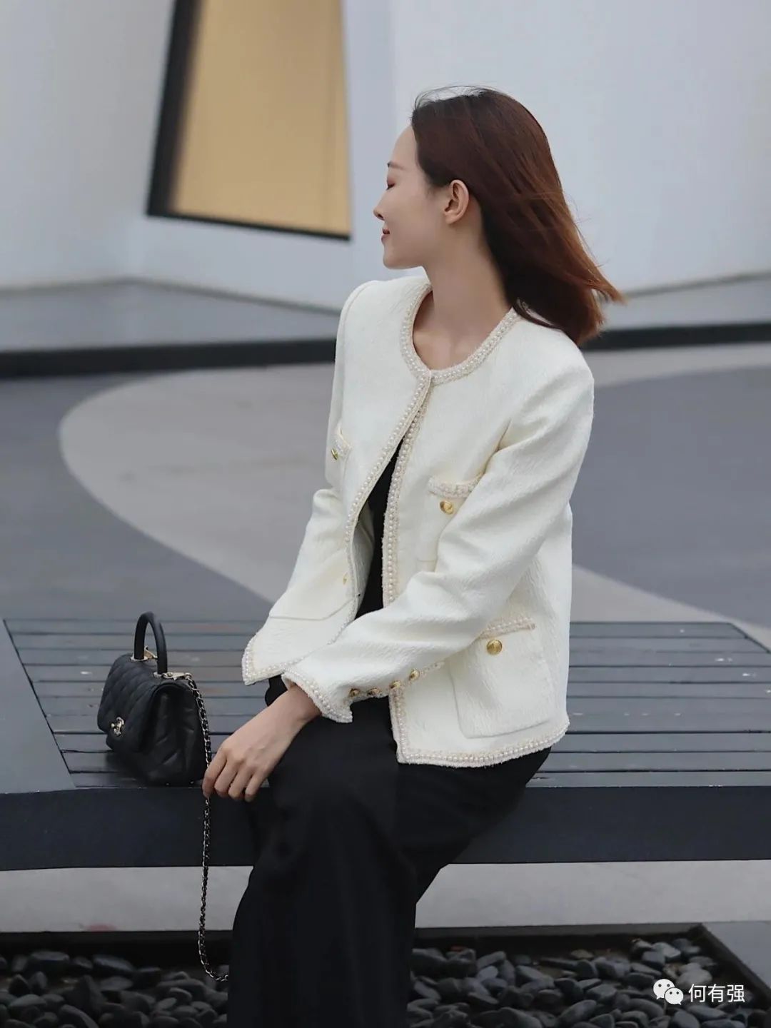身为职场女性,凸显出精致感可是很有必要的,小香风造型融入了优雅的气息,同时又加入了编织工艺,所以会让你的穿搭呈现出浓郁的精致感,让整个人看上去更加高级。