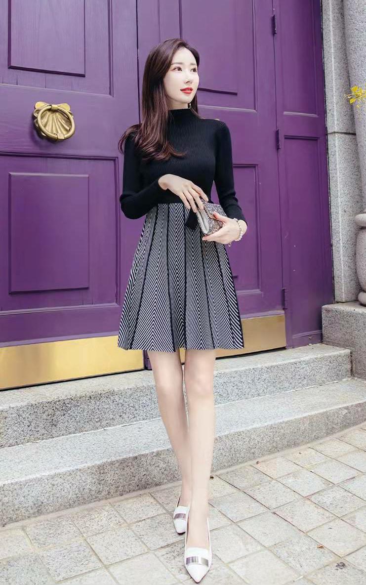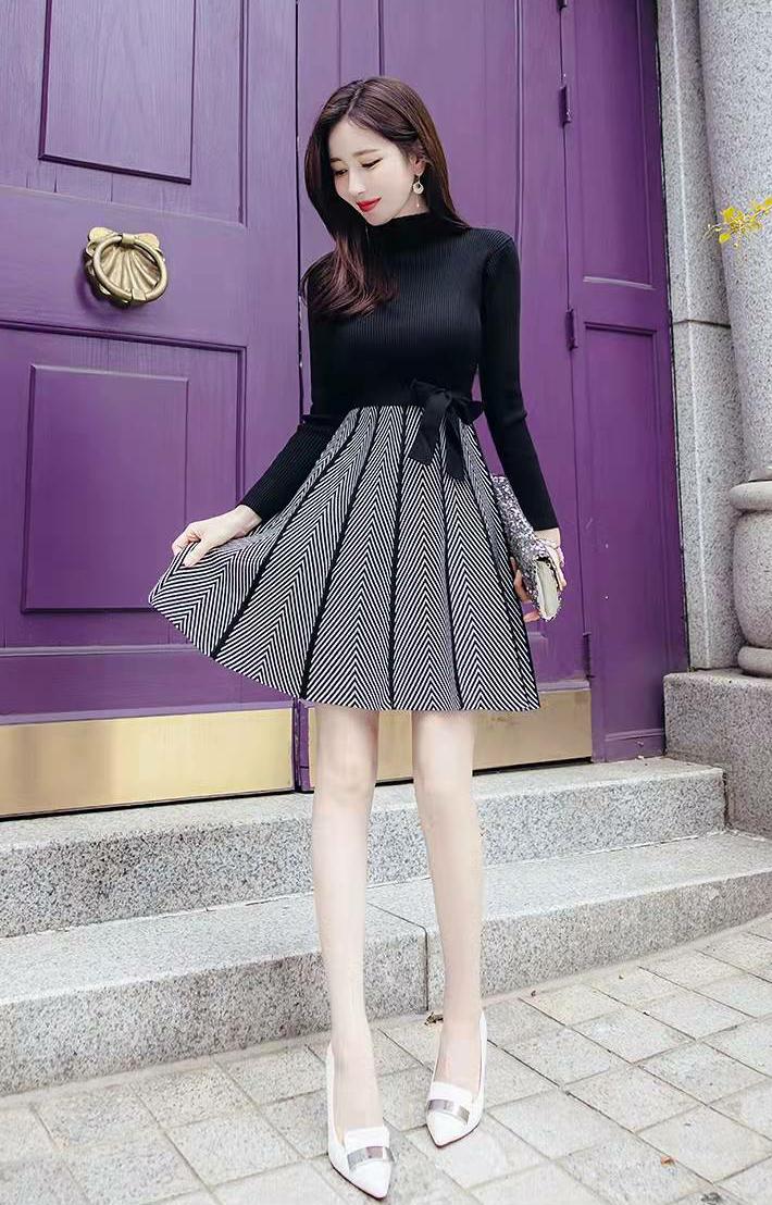 秋冬怎么穿搭显气质?黑色内搭A字系带针织连衣裙 优雅又有气质(3)