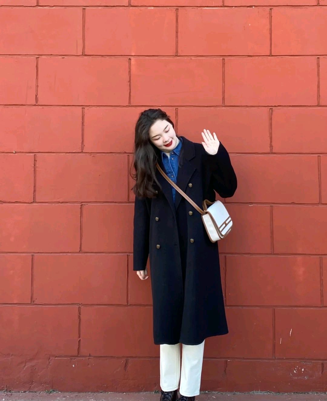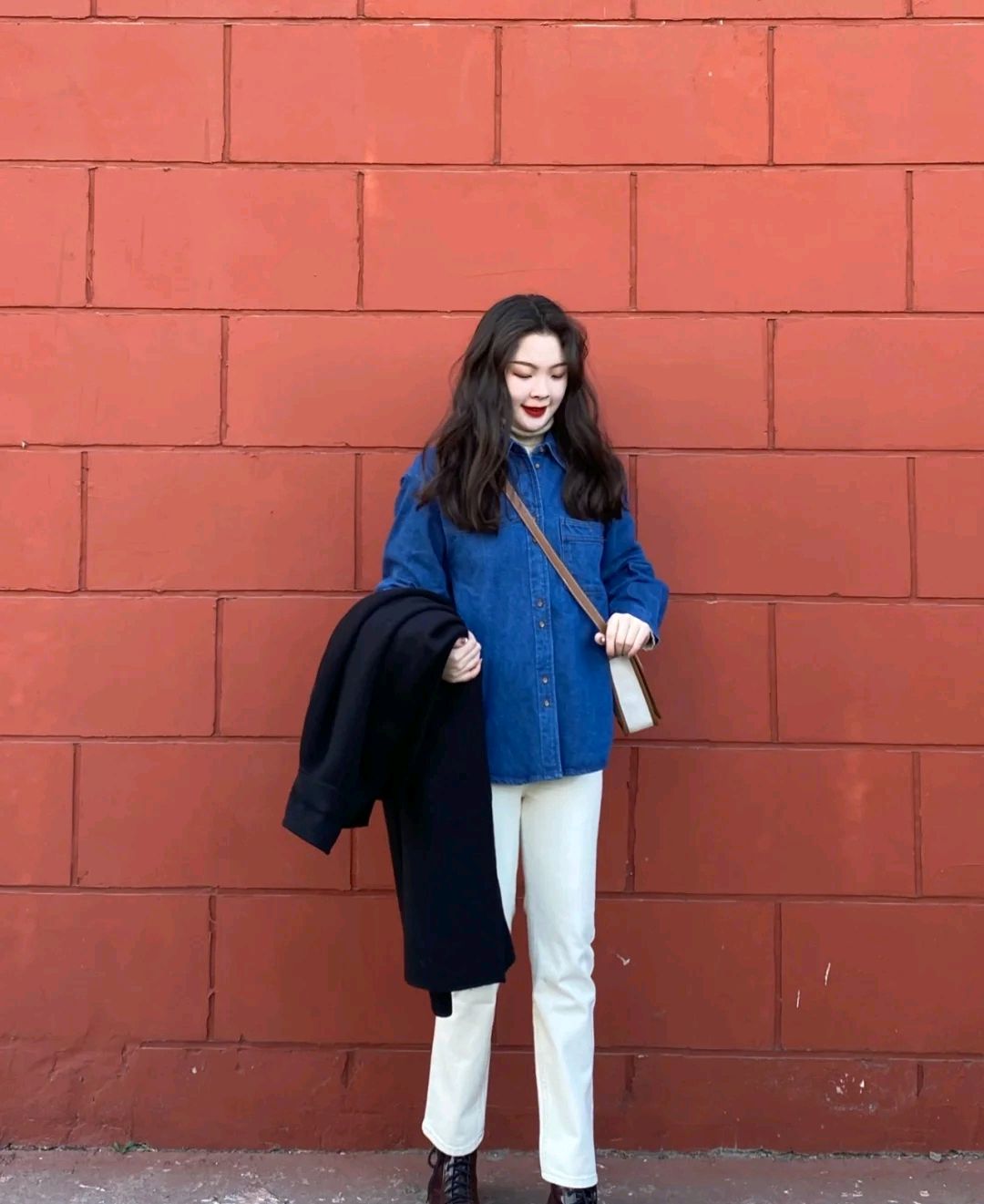 尤其是这位时尚博主的穿搭细节很值得女生们细品,首先,她选择了叠穿的方式,选择了三件衣服叠穿在一起,黑色大衣叠穿蓝色牛仔衬衫,并且还选择了浅色高领毛衣作为内搭,这样的搭配方法可以避免单调感,还可以让整体穿搭造型更有层次感。