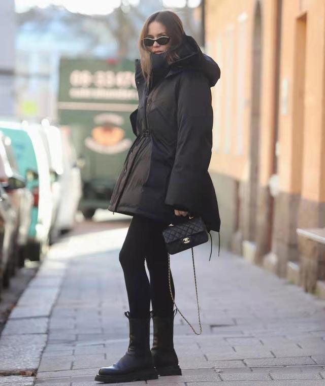 还有就是黑色属于低调沉稳的深色系,所以在穿搭上面更容易凸显其成熟稳重的魅力。也正因为如此,黑色羽绒服对于年龄也没有什么限制,基本上适合全龄段人群选搭,简单时尚又不失高级韵味儿。