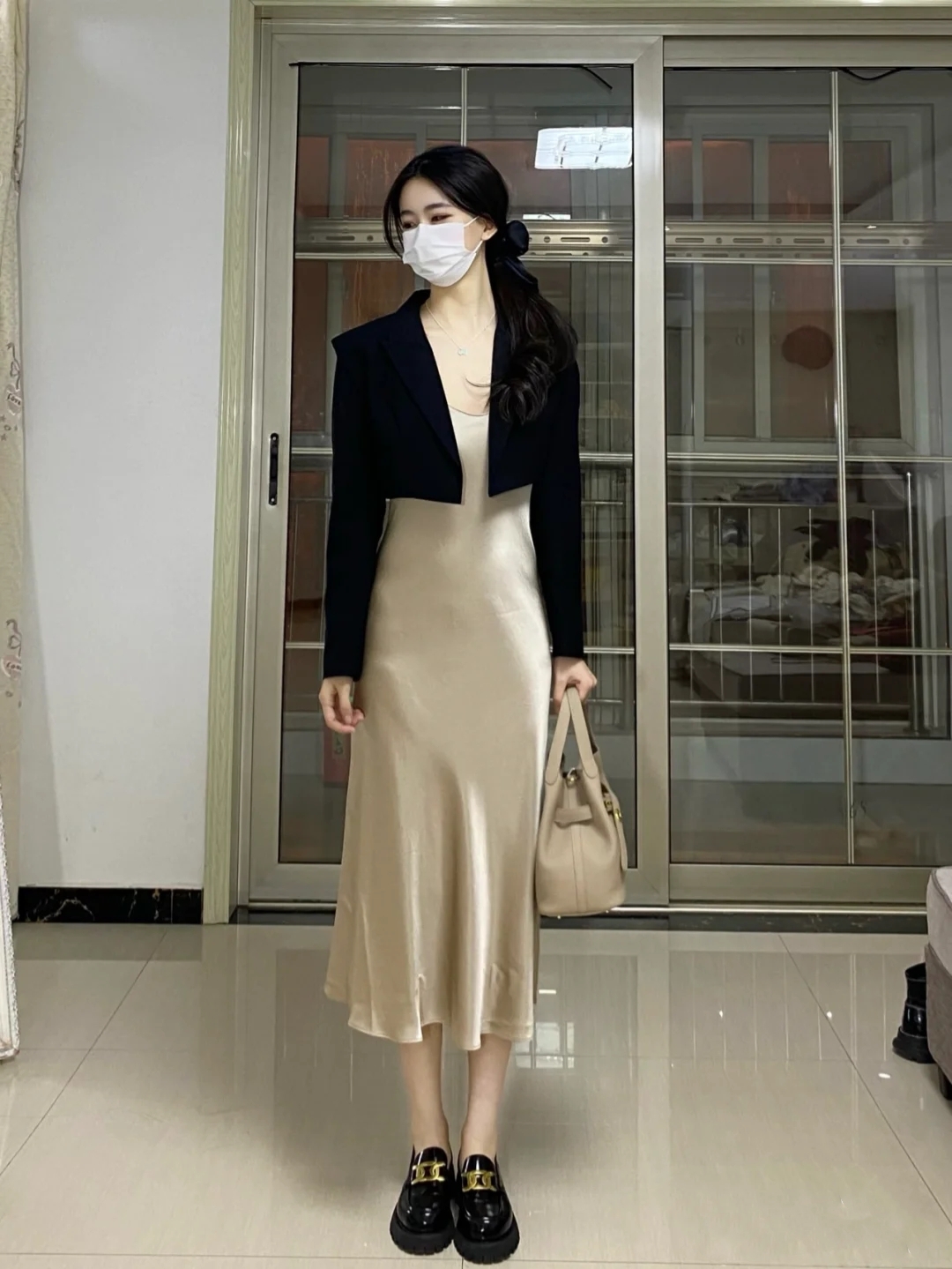 真丝连衣裙子平时可以穿么?小姐姐搭配小西服 收腰显瘦又贼气质(3)