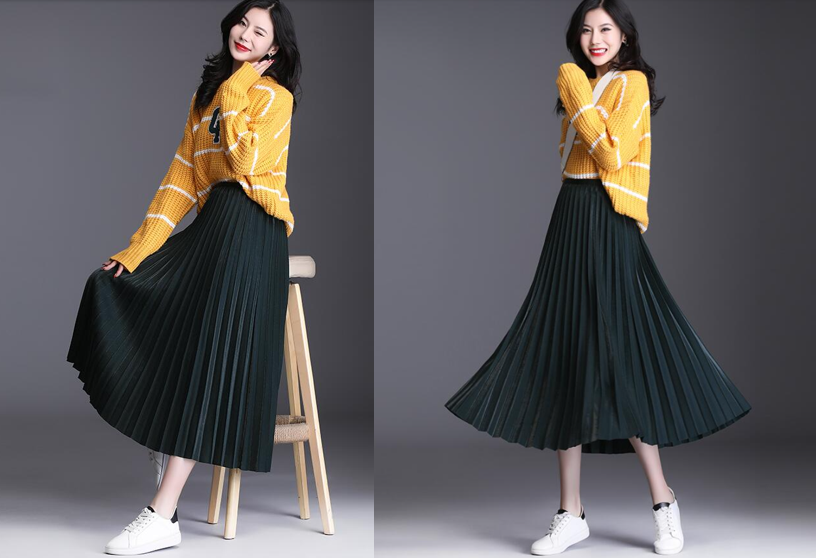 爱美之心,人皆有之。尤其是女人,将自己打扮得漂漂亮亮的,心情自然也就跟着好起来,就像是穿上一件漂亮的衣服!这件高腰百褶裙,简直是太优雅,太有女人味了,一件简单的毛衣+墨绿色百褶裙,配上一双小白鞋,足够的优雅。