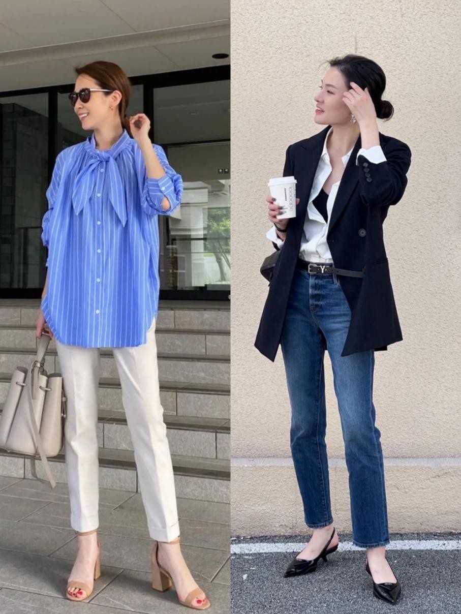 裤装自带洒脱随性的中性感,因此在穿搭中需要加入精美配饰与之调和,才能避免穿出模式化。这一点日本博主就做得特别好,她们很擅长用配饰小物来化解基础款穿搭的无趣。这两套Look都是针织衫+九分裤的组合,简约随性又带着干练气质,用银色的耳饰和手链点缀其中注入精致感,那股轻奢贵气的淑女范瞬间就被提点出来了。