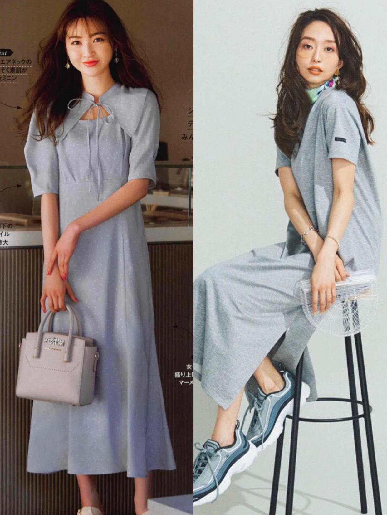 灰色则是介于黑色与白色之间的颜色,它看起来朦胧高级,显白又大气,就算是纯色也可以营造出温婉优雅的女神气息。可以借鉴博主的造型,选择修身性较强的灰色连衣裙,这样会很好的勾勒出玲珑有致的好身材,在胸口点缀挖空元素的话,更能露出白皙肌肤,也会通过蝴蝶结元素注入俏皮感,打破纯色的单一。