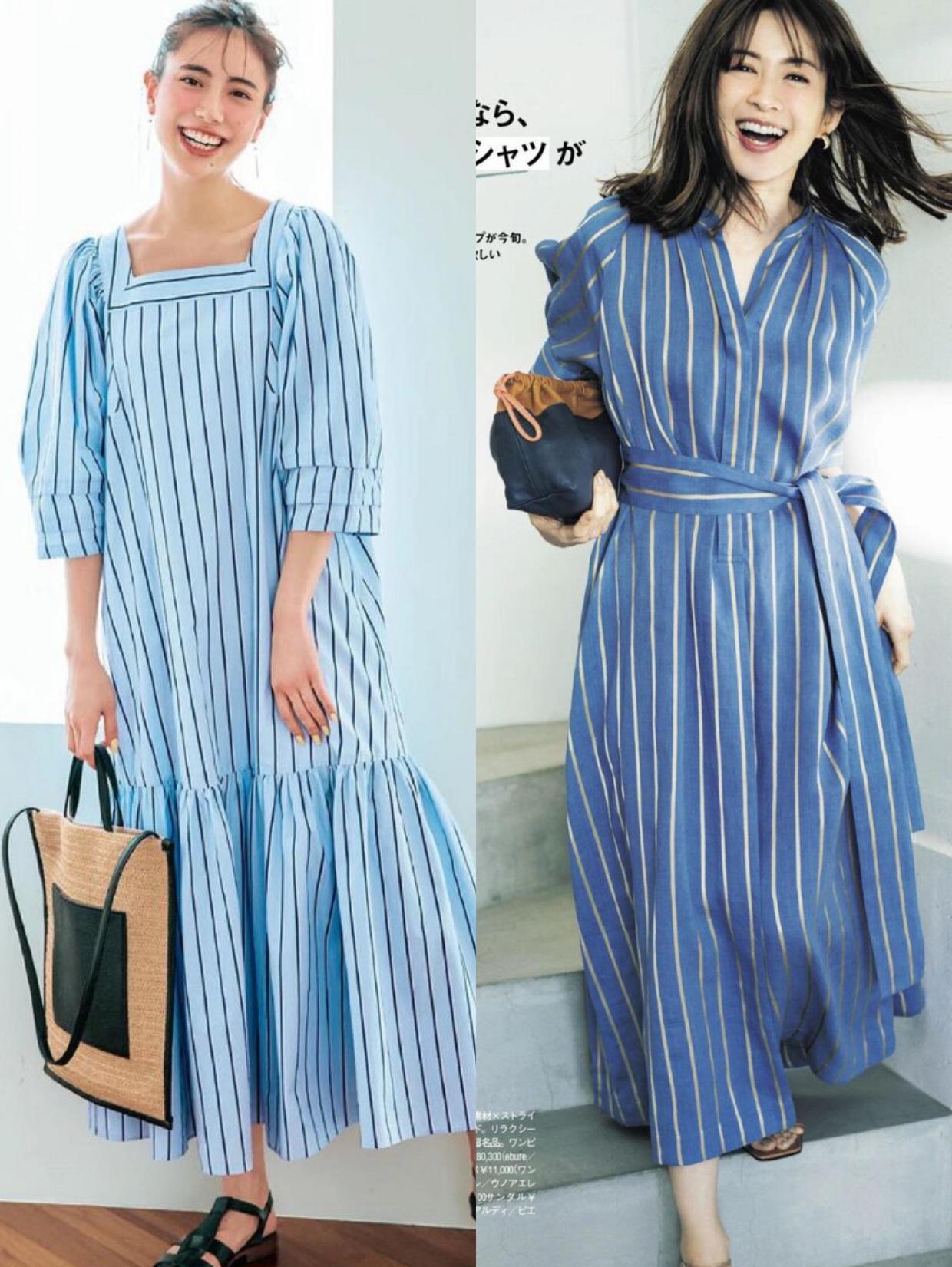 相比较纯色连衣裙来说,条纹印花裙似乎更实用。竖条纹印花元素的加持会让整体的层次感看起来更丰富,而且它会通过间距相等的条纹印花纵向拉长人们的视觉效果,从而让你的个子看起来更高挑,也会起到不错的显瘦效果,选择白色或黑色作为条纹配色都是可取的。