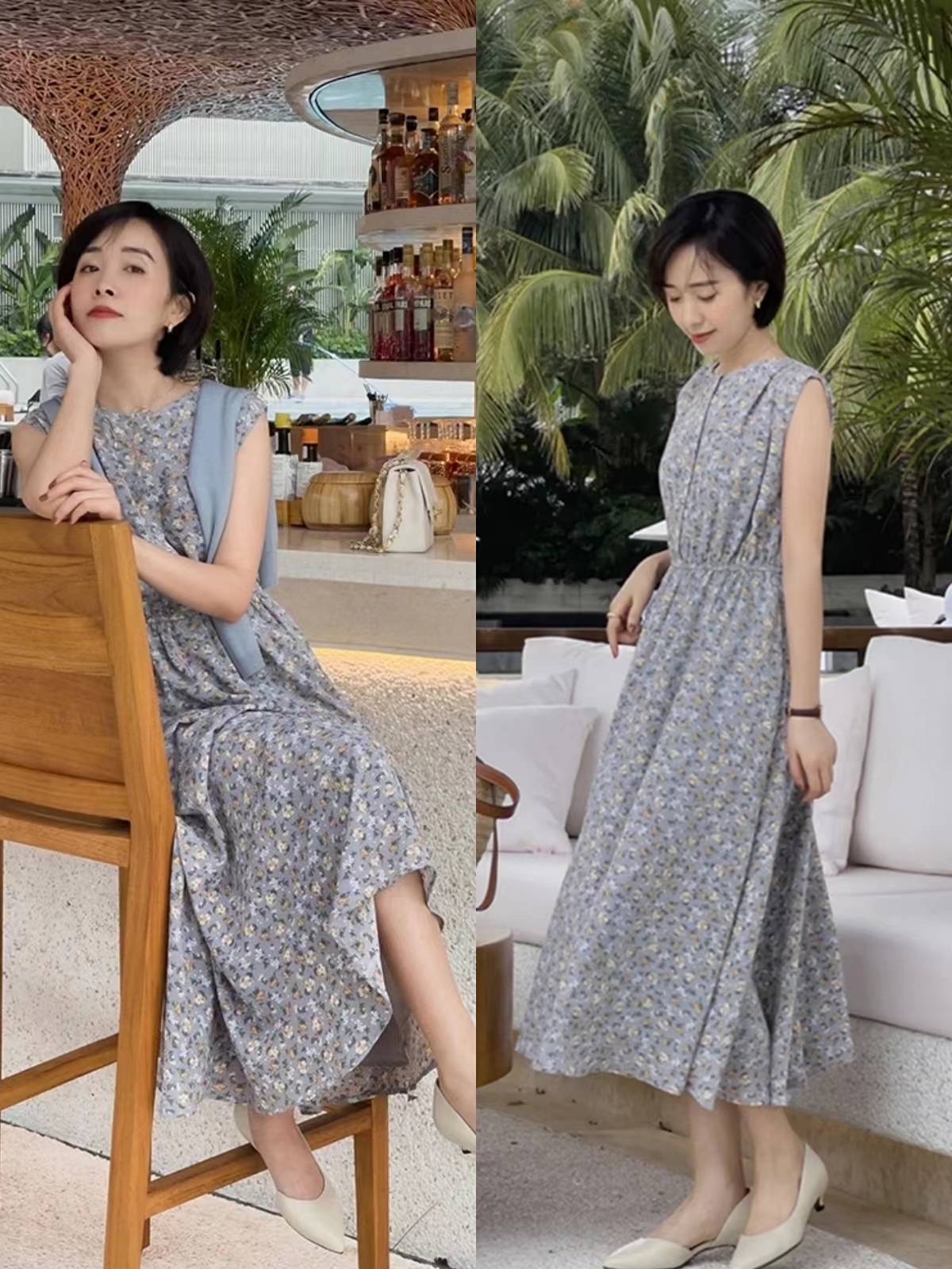 这样一条小碎花裙、小波点裙,在修饰身型这一点上也很出色,可以让你的身材曲线看起来修长优美。