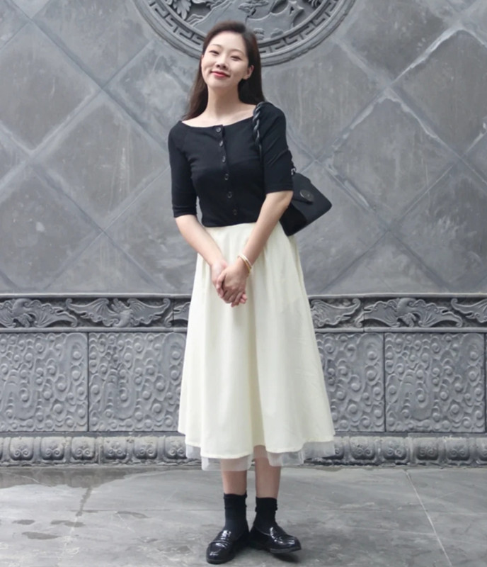 基础色款式简单但却充满了无边的魅力,在时尚的洪流中,它更像是定海神针一样地存在,永远不会被淘汰。在穿着乐福鞋时,整体的配色就可以以清浅的色调为主,以此来突出个人的高级气质,使得优雅与端庄的大气感自清爽简约的配色中脱颖而出。