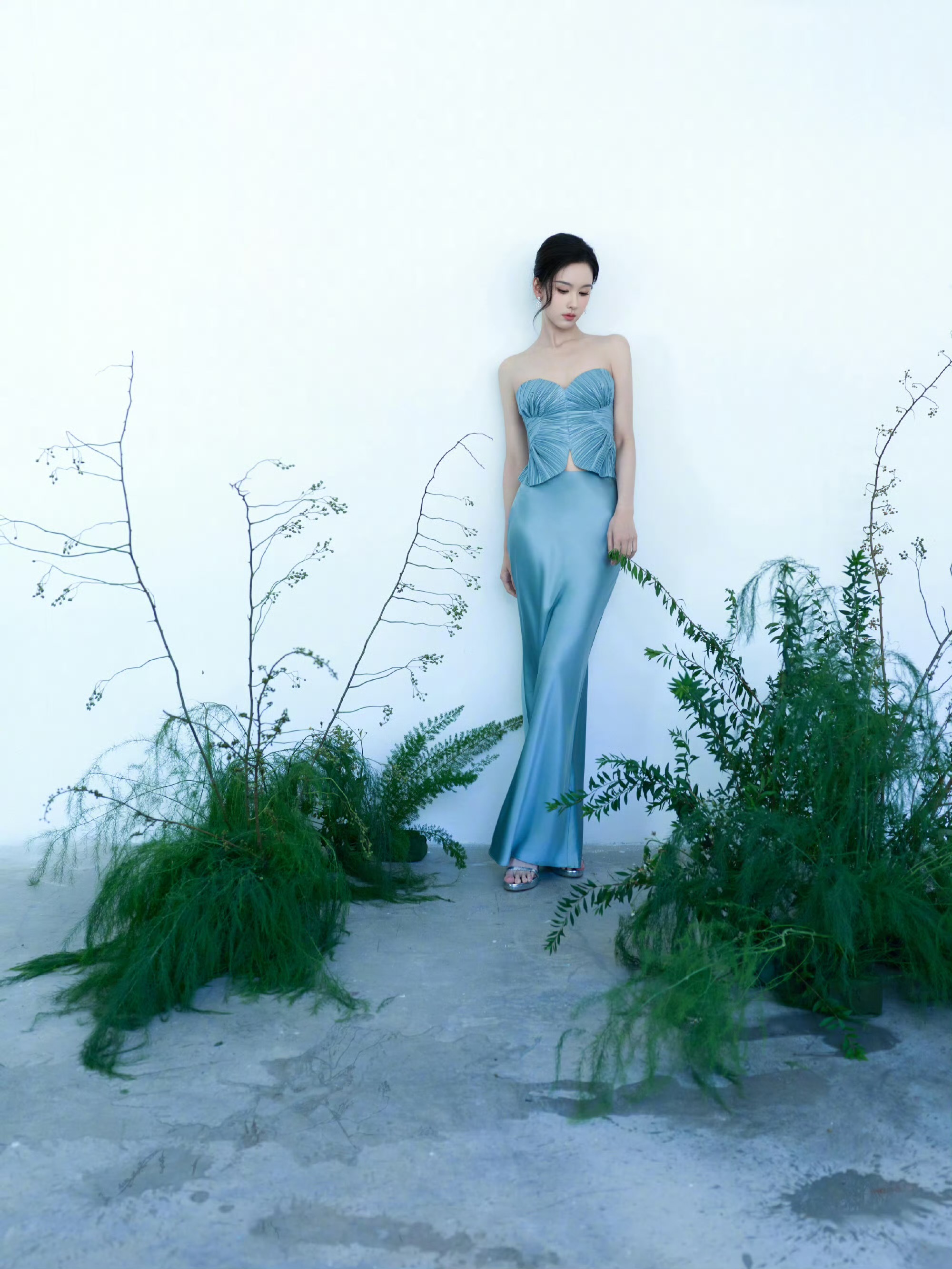 陈都灵金鸡奖第二套造型,一袭CULT GAIA 2025秋冬蓝色抹胸礼服,惊艳亮相。上身褶皱与露腰剪裁,尽显身材比例,气质绝佳,实在是优雅公主一位。